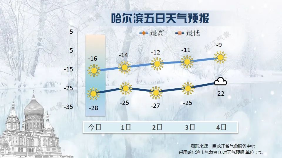 2日夜间至3日白天:全市晴,偏西风1~3级,最低气温呼兰、木兰、巴彦、延寿、通河-31~-28℃,其他区域-27~-24℃,最高气温-13~-10℃。